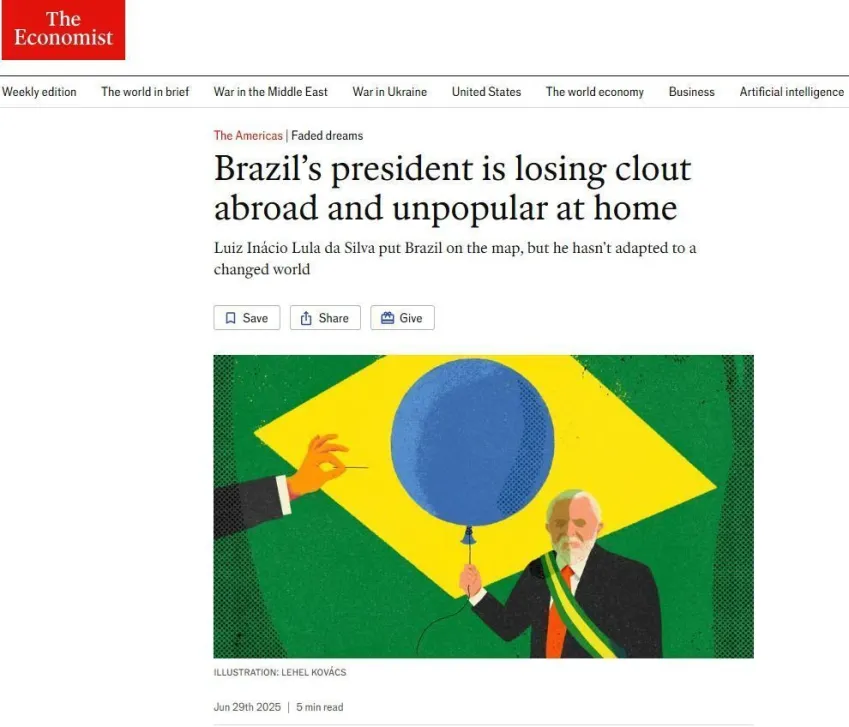 A revista britânica The Economist publicou uma análise crítica sobre o presidente Luiz Inácio Lula da Silva. Segundo a publicação, o petista vive um momento de incoerência no exterior e de perda de apoio dentro do Brasil.